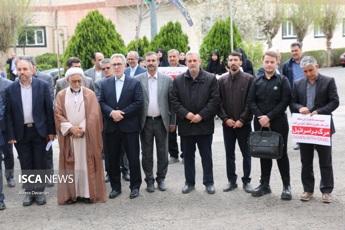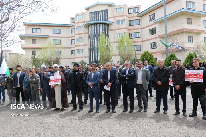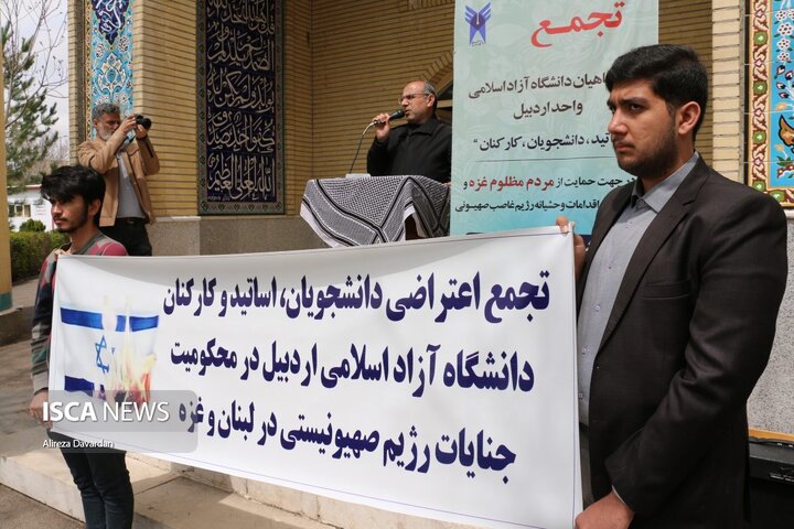 اساتید، دانشجویان و کارکنان دانشگاه آزاد اسلامی واحد اردبیل در حمایت از مردم مظلوم غزه و محکومیت اقدامات وحشیانه رژیم غاصب صهیونی تجمع کردند.