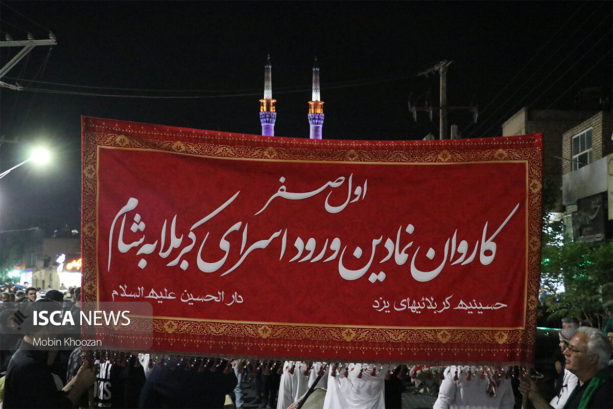 در آیینی باشکوه و مملو از حزن، مراسم بازسازی ورود کاروان اسرای کربلا به شام در نخستین روز ماه صفر، با حرکت نمادین از حسینیه حاجی یوسف به حسینیه کربلائیهای یزد برگزار شد. این مراسم که با حضور چشمگیر عاشقان اهل بیت (ع) و فضای معنوی خاصی همراه بود، روایتگر لحظات جانکاه مظلومیت خاندان امام حسین (ع) پس از واقعه عاشورا بود.