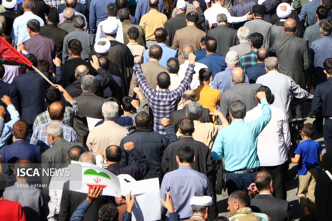 به گزارش خبرنگار استانی ایسکانیوز از بجنورد، بهمناسبت دومین سالگرد طوفانالاقصی مردم مرکز خراسانشمالی همزمان با سراسر کشور، پس از اقامه نماز جمعه ۱۸ مهر ۱۴۰۴، در راهپیمایی «بشارت نصر» با حضور گسترده نمازگزاران، خانوادهها و اقشار مختلف مردم، جنایات رژیم صهیونیستی در غزه را محکوم کردند.