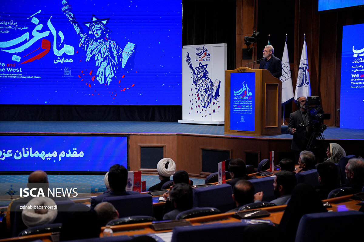 مراسم اختتامیه همایش «ما و غرب» در آراء و اندیشه حضرت آیت الله خامنه ای امروز دوشنبه 19 آبان ماه 1404 با حضور دکتر علی لاریحانی، دبیر شورای عالی امنیت ملی و از چهره های علمی و پژوهشی کشور در تالار همایش های بین المللی صدا و سیمای جمهوری اسلامی ایران برگزار شد.