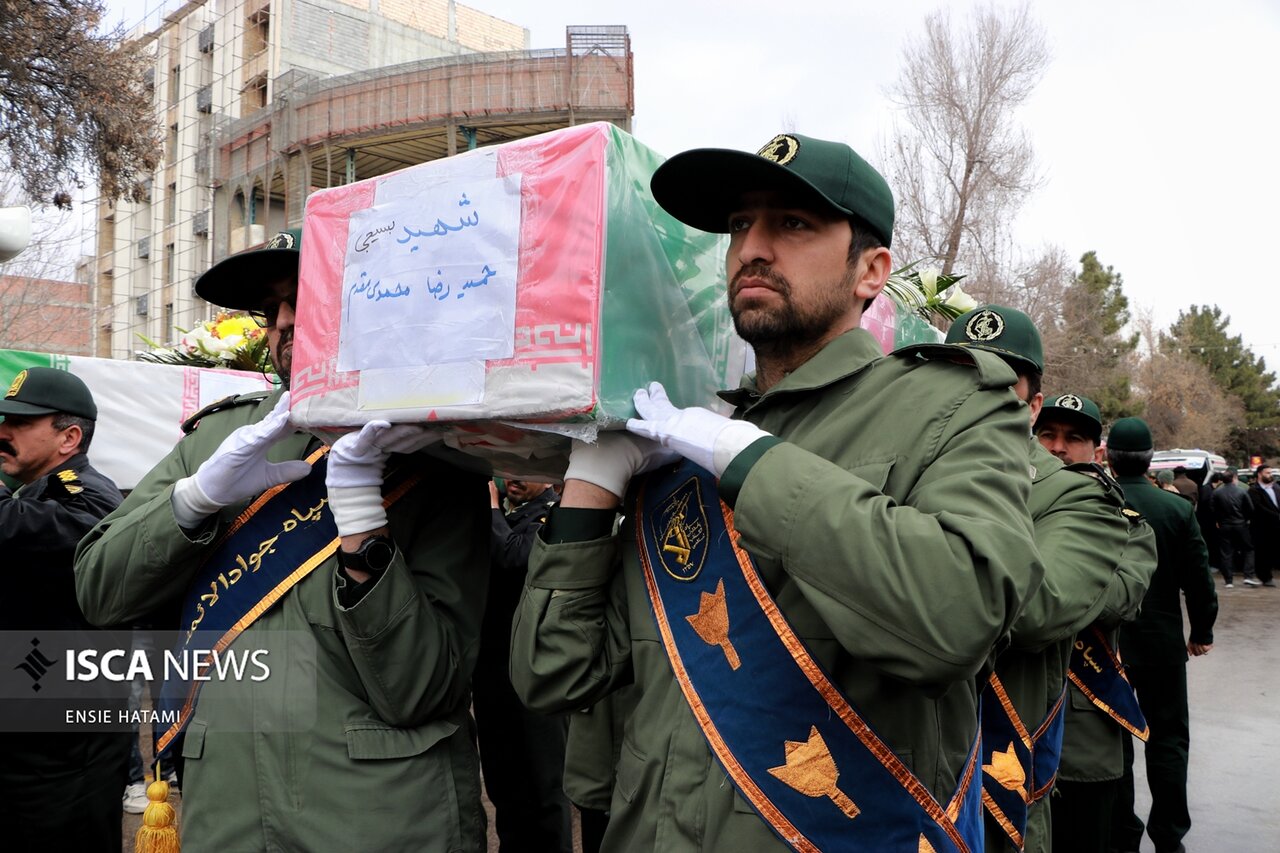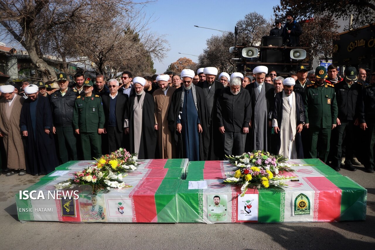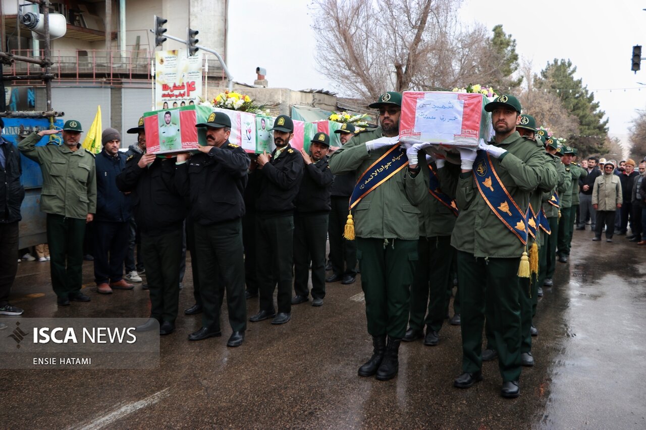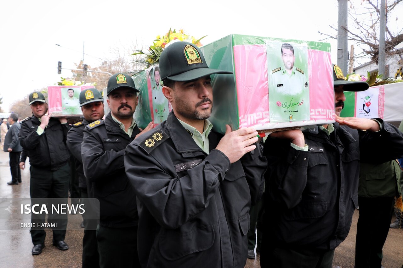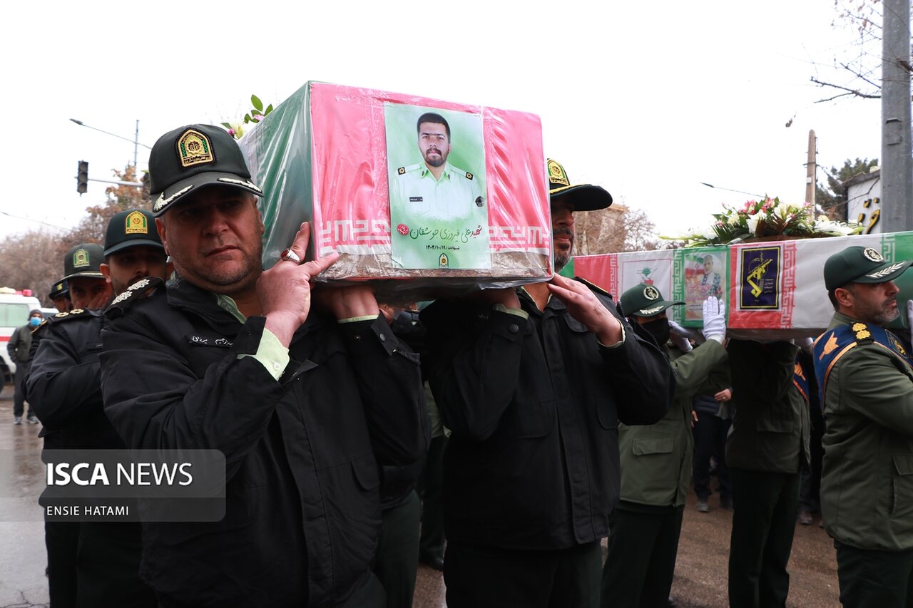 پیکر پاک و مطهر ۶ شهید مدافع امنیت در طی اغتشاشات اخیر توسط تروریستها به درجه رفیع شهادت نائل آمدند، صبح روز یکشنبه ۲۱ دی ماه ۱۴۰۴ از مقابل مسجد انقلاب بجنورد بر روی دستان مردم شهید پرور و ولایتمدار این استان تشییع شد.