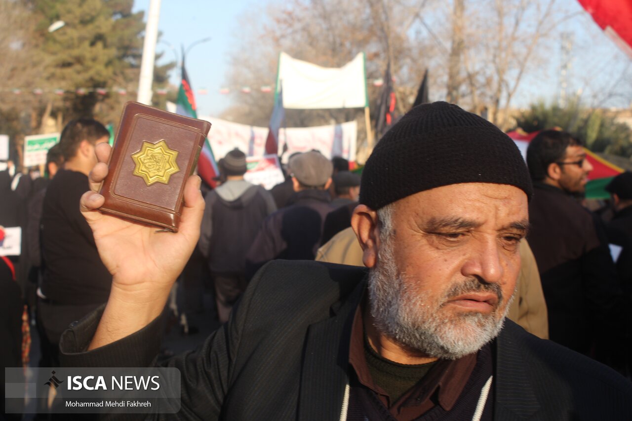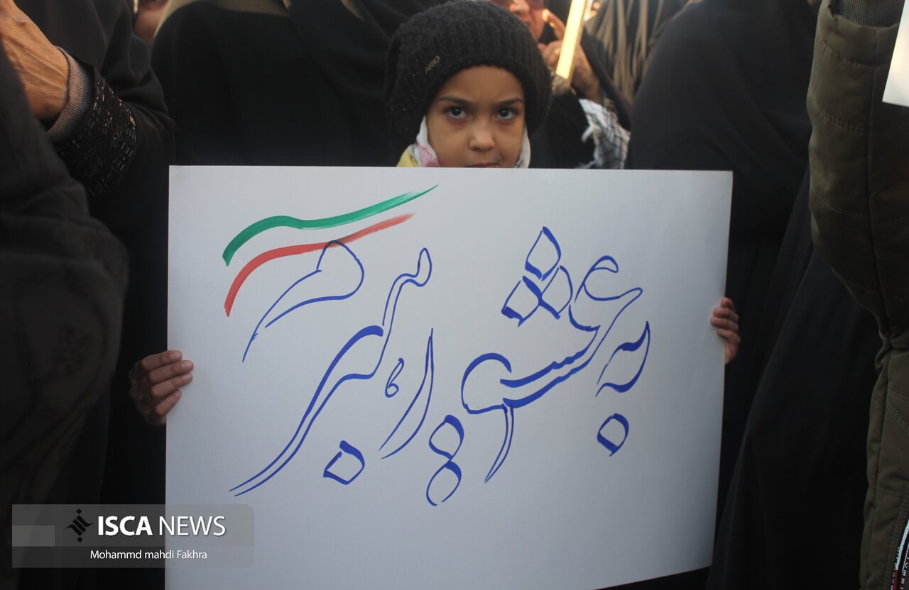 مردم شهر کاشان استان اصفهان با حضور در تجمع عظیم و باشکوه روز پنجشنبه، انزجار خود را از اقدامات اشقیای تروریست که در میان اعتراضات به حق مردم نفوذ و موجب تخریب و شهادت جمعی از هموطنان شدند را بیان کردند