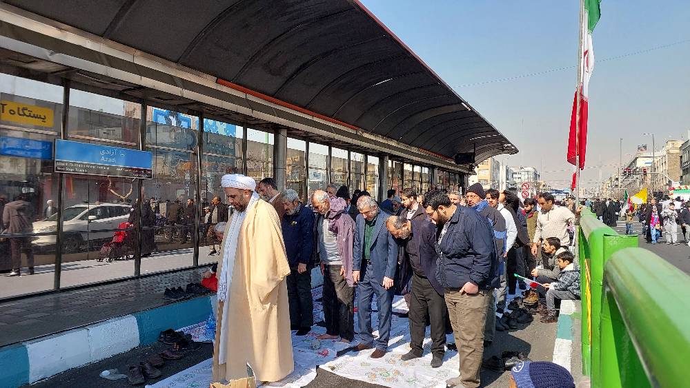 جمعی از مردم در خیابان آزادی تقاطع بهبودی نماز اقامه کردند.