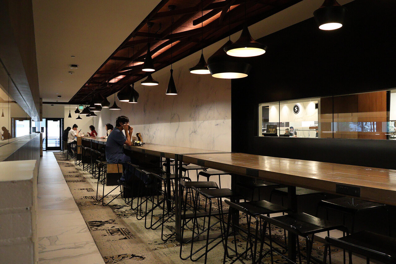 دانشجویی تنها درحال غذاخوردن در رستوران دانشگاه کالیفرنیا پس از تخلیه هزاران دانشجو