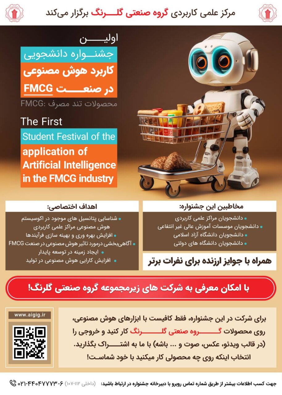 مرکز علمی کاربردی گروه صنعتی گلرنگ به زودی اولین جشنواره دانشجویی کاربرد هوش مصنوعی در صنعت FMCG را برگزار خواهد کرد. این رویداد با هدف شناسایی و معرفی استعدادهای دانشجویی در زمینه هوش مصنوعی و کاربرد آن در محصولات تند مصرف (FMCG) طراحی شده است.