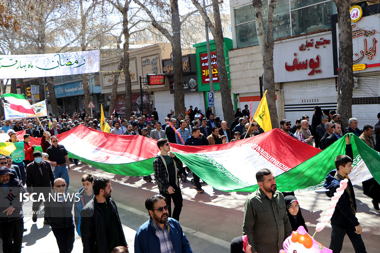 مردم ولایتمدار و روزه دار خراسانشمالی همزمان با سراسر کشور با حضور پرشور خود در راهپیمایی روز جهانی قدس، حماسهای دیگر آفریدند و بار دیگر حمایت خود را از مردم مظلوم و بی دفاع غزه به تصویر کشیدند.