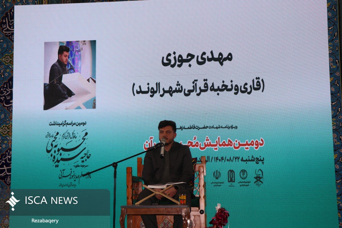 به مناسبت دومین سالگرد ارتحال بانوی قرآندوست، سیده محبوبه محبی، دومین همایش «محب قرآن» با حضور نماینده مردم قزوین فاطمه محمد بیگی، خادمین حرم امام رضا (ع)، مسئولان استانی، خانوادههای شهدا و قاریان بینالمللی و معلول در مسجد حضرت رسول اکرم (ص) شهر الوند برگزار شد و فضای معنوی ویژهای را رقم زد.