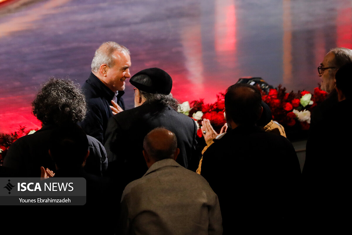 مراسم اختتامیه چهل و چهارمین جشنواره فیلم فجر،چهارشنبه(22 بهمن 1404) با حضور «مسعود پزشکیان» رئیس جمهور،«سید عباس صالحی» وزیر فرهنگ و ارشاد اسلامی و جمعی از هنرمندان در تالار وحدت برگزار شد.